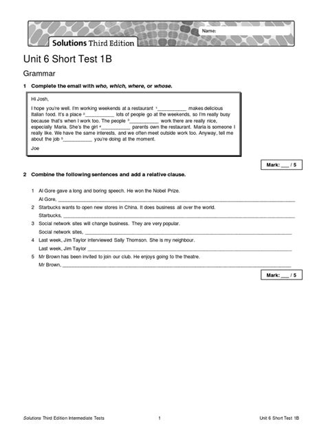 Read Online Solutions Intermediate Unit 6 Progress Tests Answers Epub