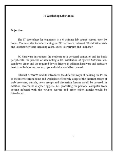 Read Online it workshop lab manual for jntuk PDF online is a convenient and frugal way to read it workshop lab manual for jntuk you love right from the comfort of your own home. Yes, there sites where you can get PDF "for free" but the ones listed below are clean from viruses and completely legal to use.