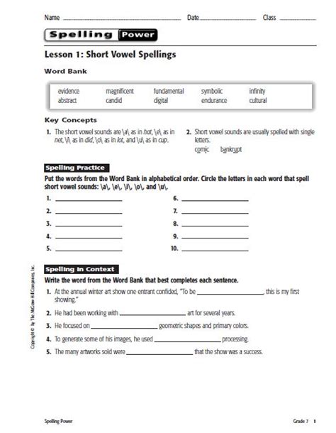Download Spelling Power Workbook Answer Key Grade 7 Doc
